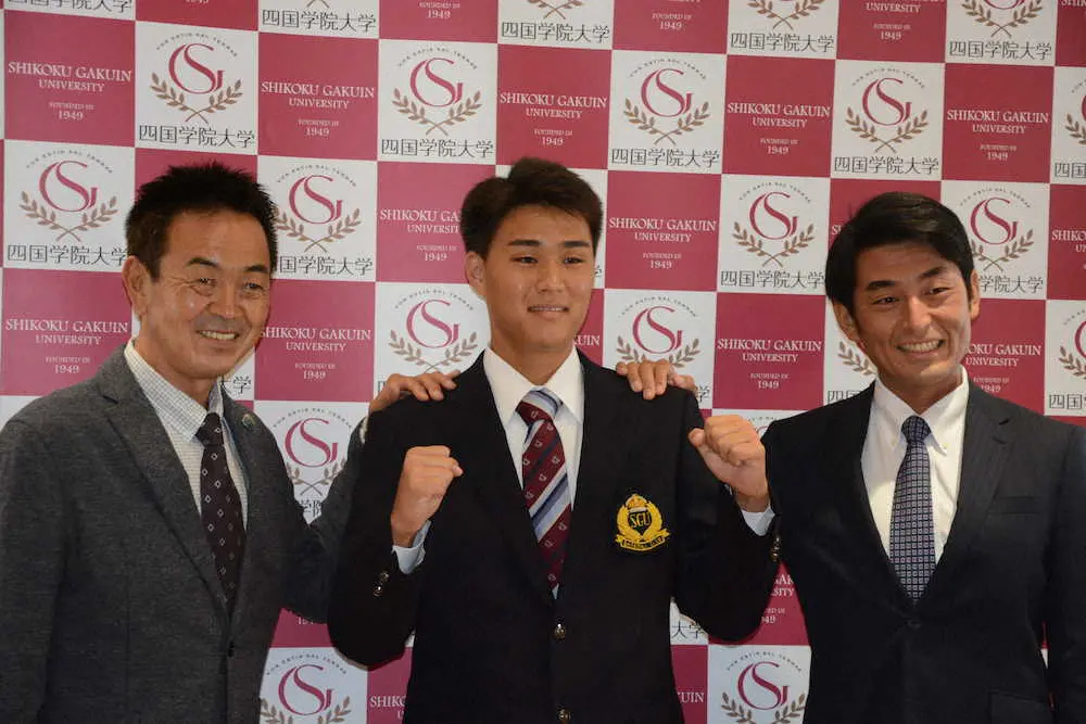 巨人から育成ドラフト8位指名を受けた四国学院大・富田龍投手(21)が19日、香川県善通寺市の同大で水野雄仁スカウト部長らから指名あいさつを受けた。最速147キロを誇る左腕は「ストレートに自信があるので、プロの世界でも通用するようにこれから磨いていけたらと思います」と意気込んだ。