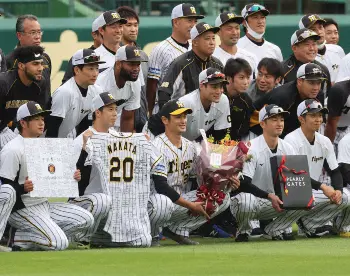 引退の阪神・中田が最後のタテジマ姿 甲子園にあいさつに訪れナインから花束