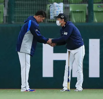 日本ハムの栗山監督や荒木投手コーチにあいさつし、横浜高の後輩、高浜らと記念写真を撮るなど、リラックスした表情を見せた。一旦ベンチに下がったが、杉谷にも記念撮影をせがまれ、にこやかに応じていた。