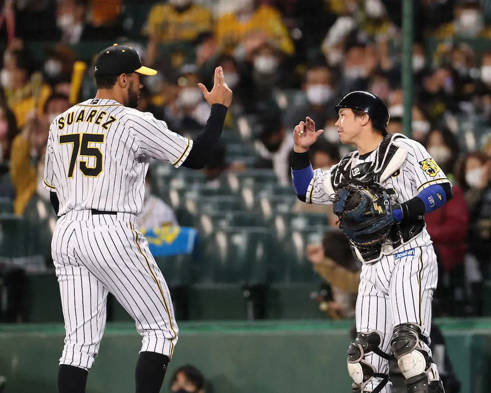 阪神・梅野が7試合ぶりに試合出場 9回にスアレスとバッテリー組み無失点に