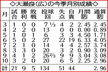 終盤の快進撃と、巨人の大失速で訪れた望外の好機。失うものは何もない。大瀬良が投球でツバメを牛耳り、希望の光をつなぐ。(江尾 卓也)