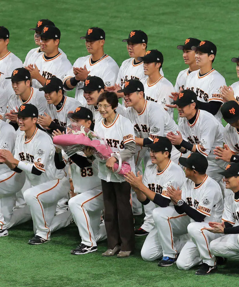 <巨・ヤ>今季限りで場内アナウンスを引退する山中美和子さん(左)にユニホームを着せる原監督 (撮影・光山 貴大) Photo by スポニチ 巨人“伝説のウグイス嬢”山中美和子さんが勇退 原監督も感慨深げ「45年間… ギャラリーで見る この記事のフォト 2021年10月23日の画像一覧 もっと見る 2021年10月23日の画像をもっと見る