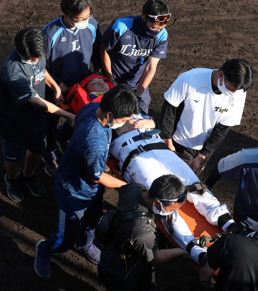 フェニックスL阪神戦の9回無死一塁、陽川の打球が頭部付近に直撃し、倒れ込む水上(撮影・坂田 高浩) Photo by スポニチ 西武水上 阪神・陽川の打球が頭部付近に直撃 救急車で搬送 ギャラリーで見る この記事のフォト 2021年10月28日の画像一覧 もっと見る 2021年10月28日の画像をもっと見る