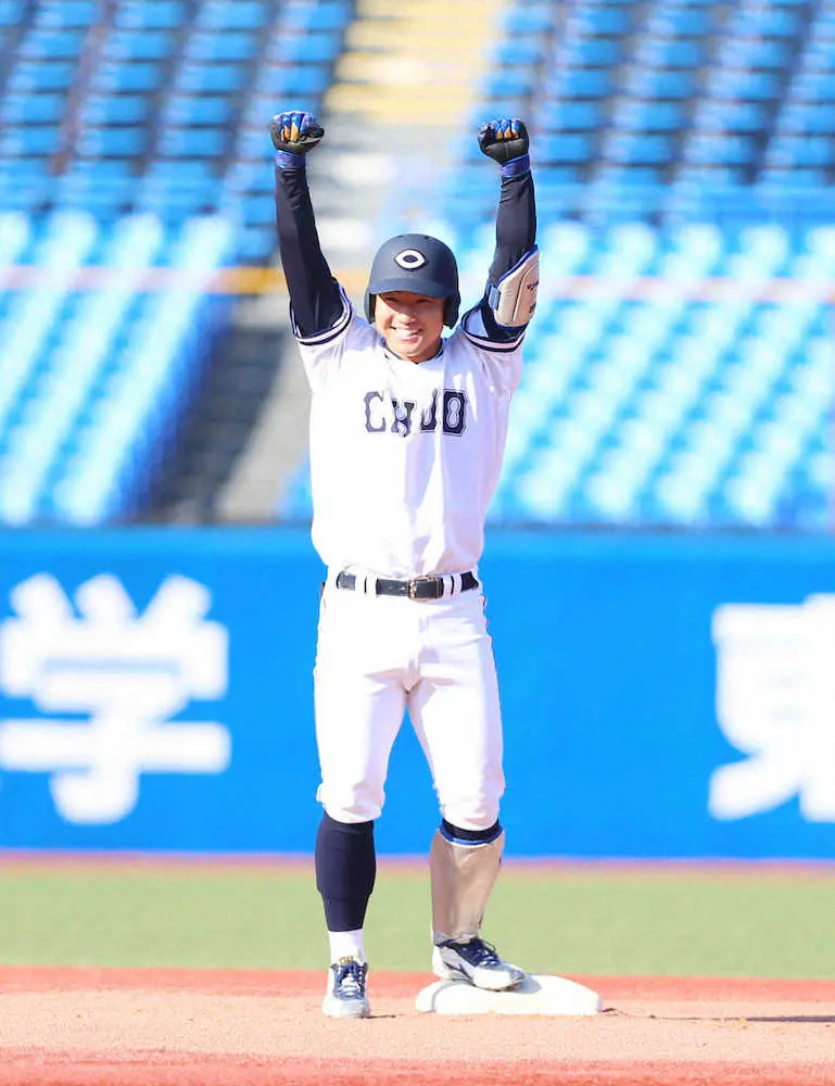 中大は最終週の第1日で首位・国学院大を1―0で下した。西武から3位指名された古賀悠斗捕手(4年)は決勝打を放った。