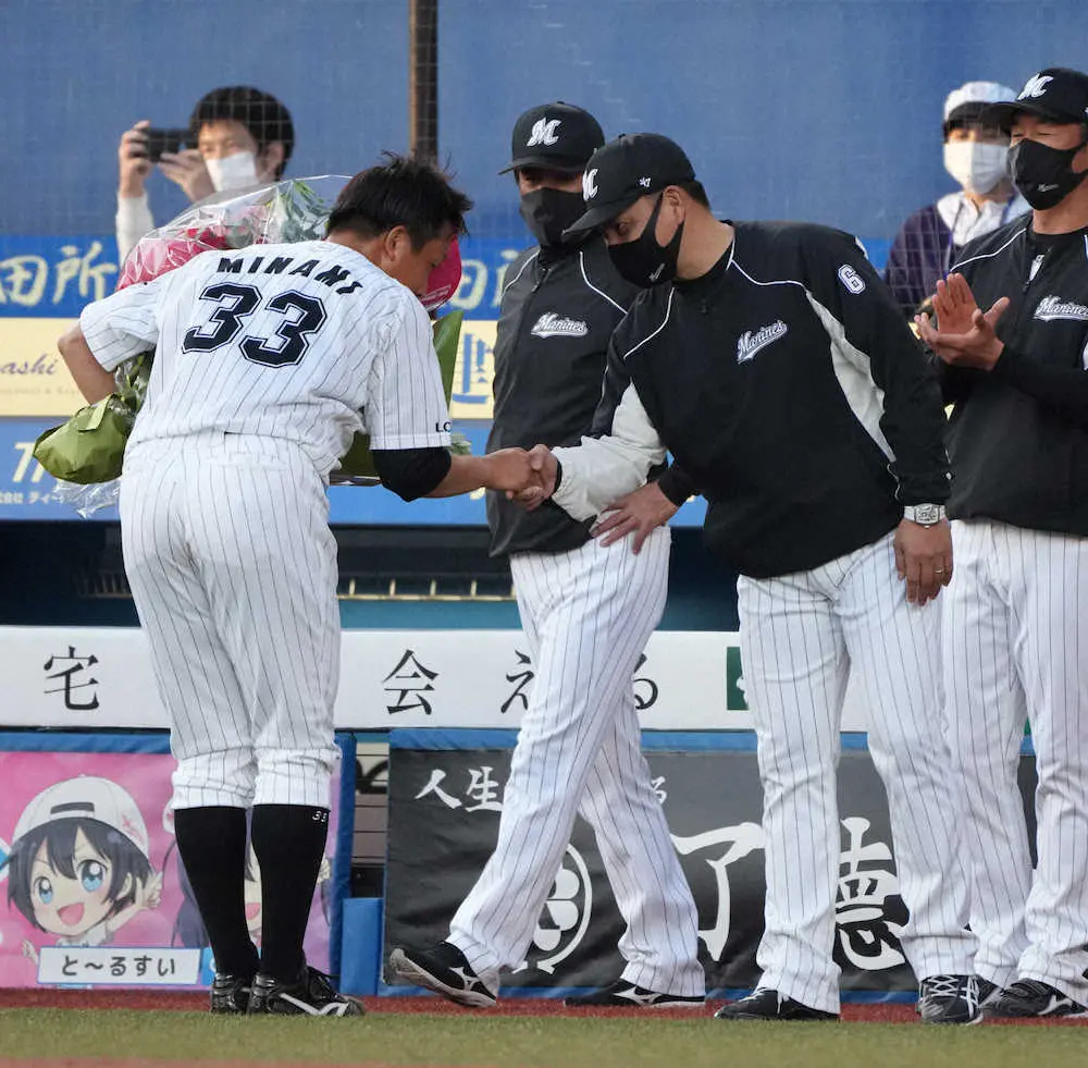 <ロ・日>7回、引退登板のマウンドに上がり高浜から三振を奪った南(撮影・長久保 豊) Photo by スポニチ 今季限りで引退のロッテ南、最速147キロで空振り三振!オール直球で高浜と… ギャラリーで見る この記事のフォト 2021年10月30日の画像一覧 もっと見る 2021年10月30日の画像をもっと見る