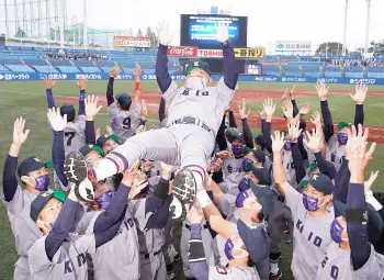 第28回九州大学野球選手権大会<九州産業大・北九州大学>優勝を決め、大久保監督を胴上げする九産大ナイン(撮影・中村 達也) Photo by スポニチ 2021年11月01日の画像一覧 もっと見る 2021年11月01日の画像をもっと見る
