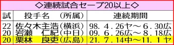 <ヤ・広25>栗林が最終回を1失点で締めてセーブを挙げる(撮影・篠原岳夫) Photo by スポニチ 失敗しない男 広島・栗林記録締め!! 新人最多タイ37S「与えられた仕事を… ギャラリーで見る この記事のフォト 2021年11月02日の画像一覧 もっと見る 2021年11月02日の画像をもっと見る