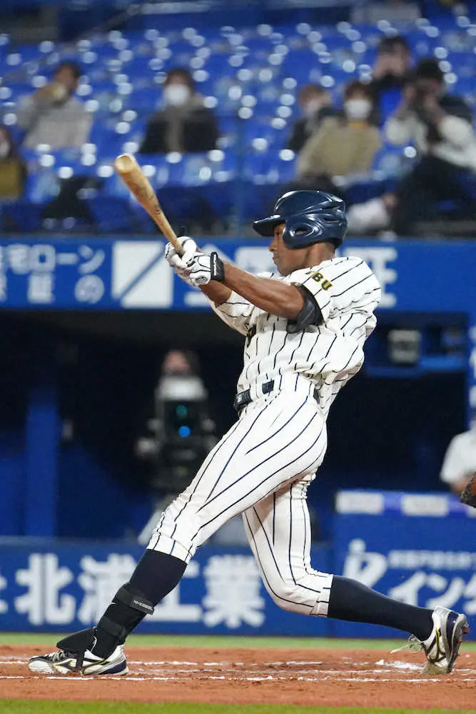中日からドラフト1位指名を受けたブライト健太(4年・都葛飾野)が「4番・中堅」で先発出場。0―0の初回2死三塁から先制の右前適時打を放ち、6回1死一塁では左前打。2安打1打点の活躍に「どんな形でもいいので1点を取りにいくことを意識していた」と振り返った。今季リーグ戦で右太腿裏を肉離れしたが「今は痛みはないので」と元気な姿を見せた。