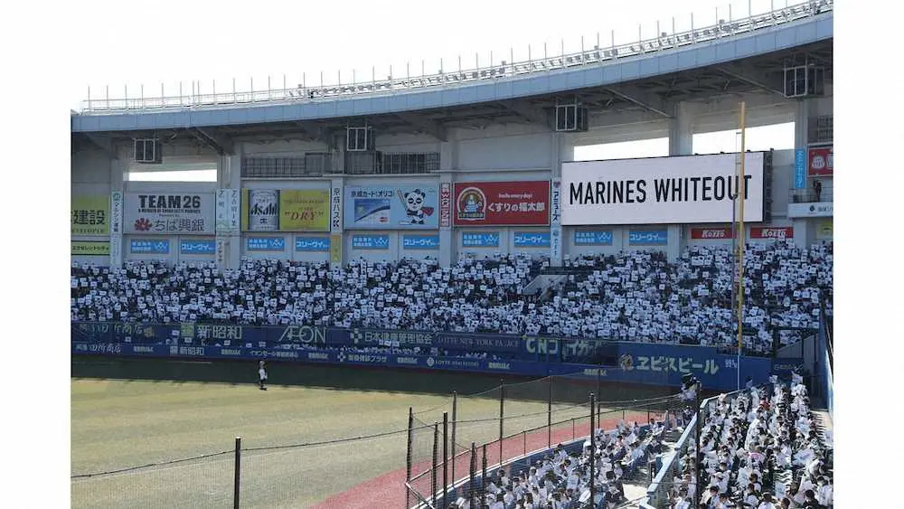 初回の裏の攻撃開始前にZOZOマリジアムをチームカラーの1つである「ホワイト」に埋め尽くすイベント「MARINES WHITEOUT(マリーンズ・ホワイトアウト)」