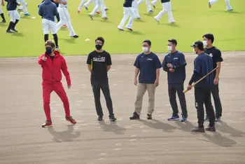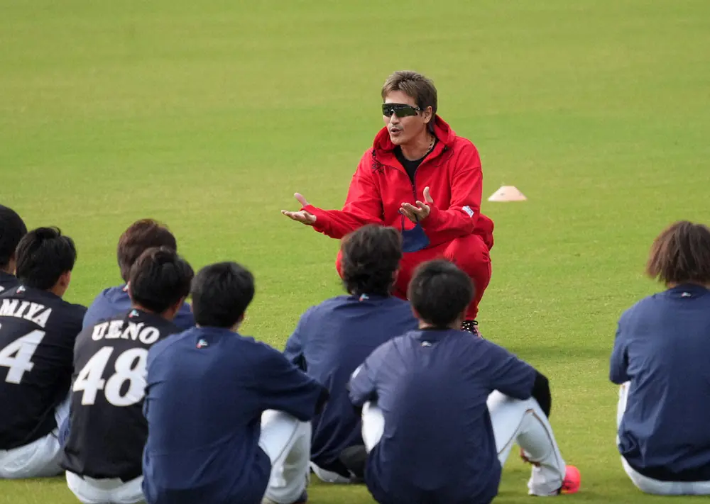 選手に訓示を行う新庄監督