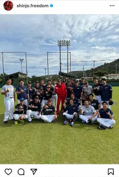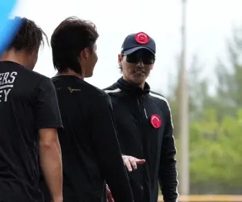 ホテルに戻り、黒ジャージーに着替えて登場した新庄監督