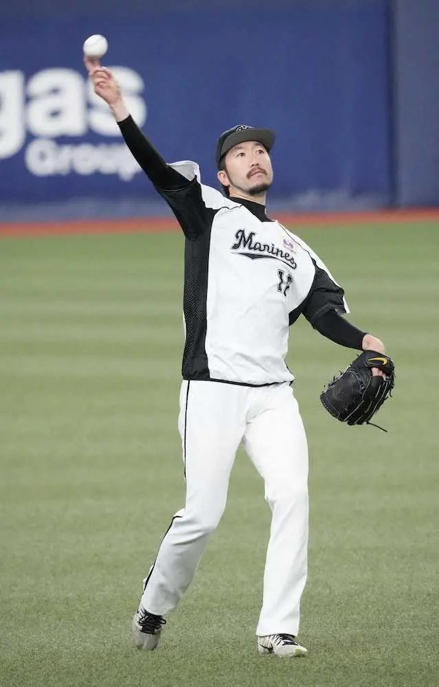 大事な初戦を任されたロッテの石川は、キャッチボールで調整。気負いは感じられなかった。