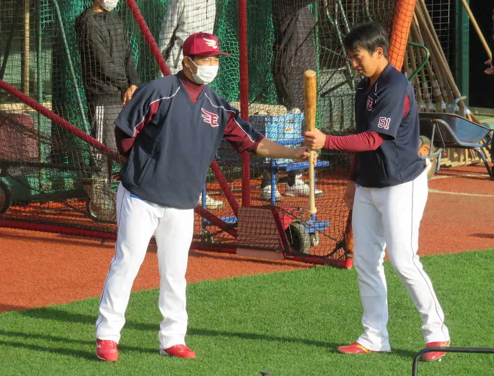 楽天生命パークで楽天の秋季練習が始まり、新任の雄平2軍打撃コーチが就任初日から熱血指導した。