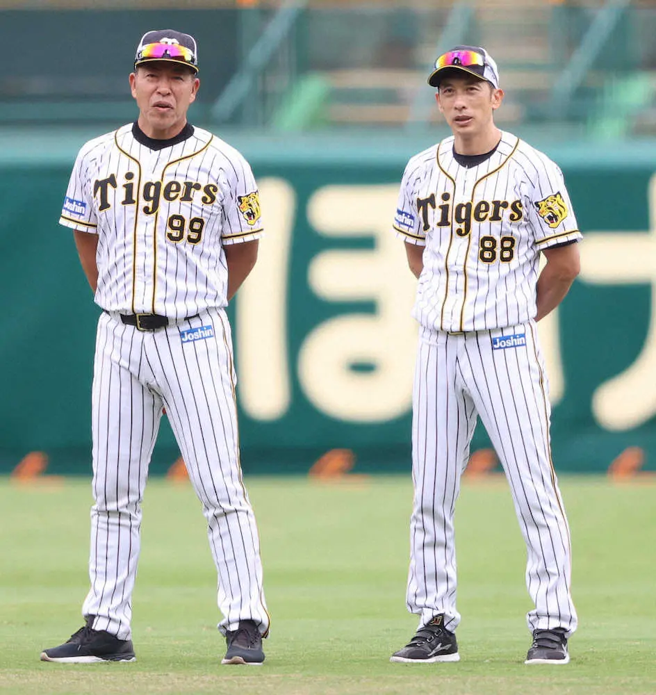 阪神・井上ヘッドコーチ(左)