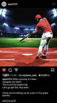 大谷の通訳を務める水原一平氏がインスタグラムを英語で更新し、大谷の快挙を祝福した。「素晴らしい旅だった。おめでとう、my man!!!」とつづると、大谷同様に前を向き「これは始まりにすぎない!次はリングを獲りに行こう!私をこの素晴らしい旅に参加させてくれてありがとう」と感謝を込めた。