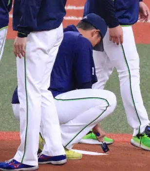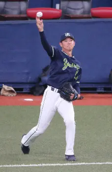 初戦の先発マウンドに上がるヤクルト・奥川は敵地でキャッチボールなどで調整。「チームに勢いをつけられるような投球ができればいい」と力を込めた。