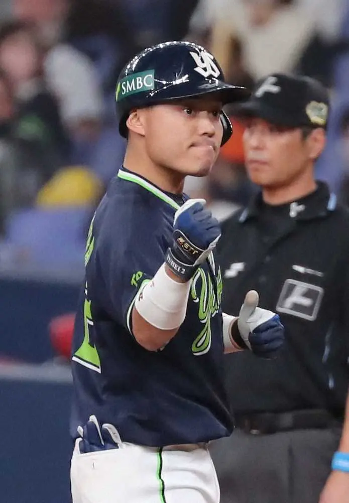 1死一、二塁のチャンスで入った第3打席。山本が1ボールから投げた2球目、真ん中低めの150キロ直球を中前に弾き返した。四球で出塁していた主将の山田が二塁からホームイン。ベンチ前でキャッチボールしていた奥川は何度も右腕を突き上げ、中村は満足そうにうなずいた。山本にとってはこの試合111球目。続くオスナは併殺打に倒れて追加点はならなかったが、5回まで71球で4安打無失点投球を続けている奥川にとって待望の先制点となった。