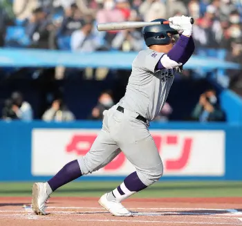 中学時代、オンラインで元巨人の高橋由伸氏に指導してもらったことがある。「抽選で当たってバットの出し方を指導してもらった」と麟太郎。その高橋氏も慶大時代に活躍した場所で、衝撃の全国デビューを果たした。(川島 毅洋)
