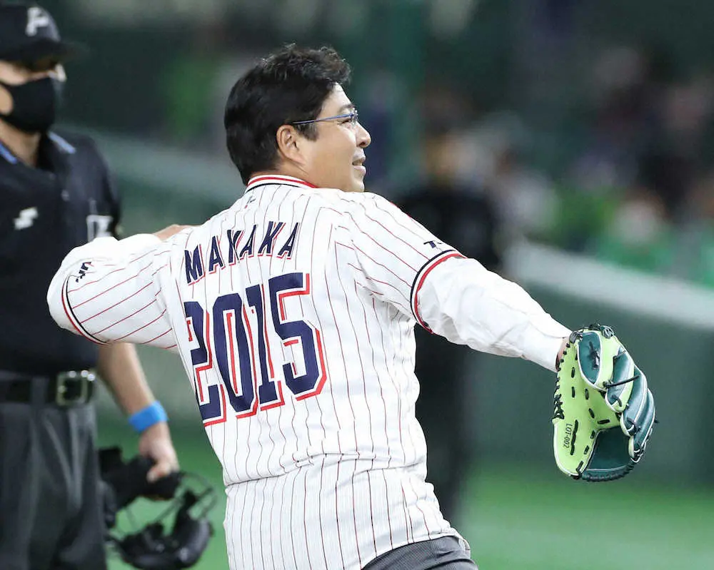 元ヤクルト監督の真中満氏(50)が23日、「SMBC日本シリーズ2021」第3戦(東京D)の始球式に登場。サウスポーから山なりのノーバン投球を披露した。