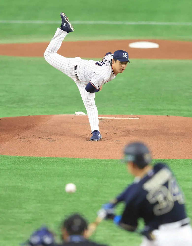 <日本S ヤ・オ(3)>初回2死、吉田正から三振を奪う小川 (撮影・白鳥 佳樹)