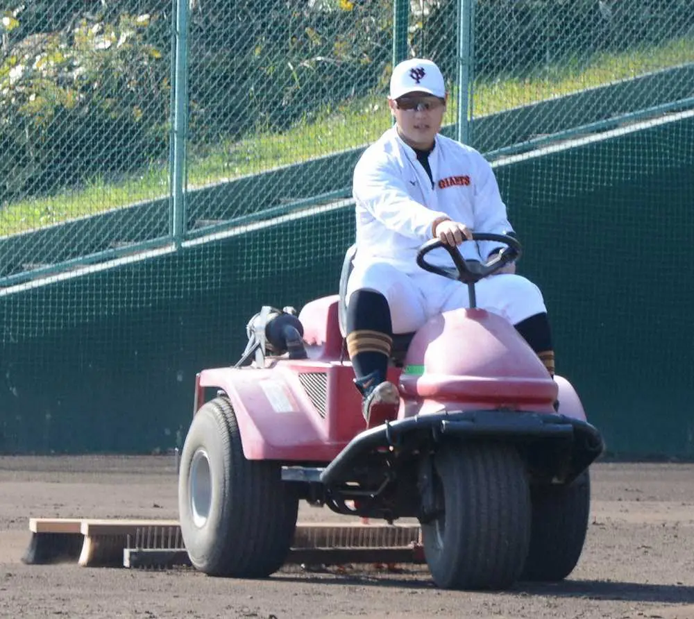 練習後の岡本和の様子を見守っていると、主にグラウンドキーパーが使用するカートに乗り込んだ。どうやら初めてらしく、エンジンを掛けるのにも四苦八苦していた。ただ、いざ走り出すと徐々にハンドルさばきは安定。きれいにグラウンドを整備し、近くにいたスタッフに「結構、うまいでしょ」と満足げな表情を浮かべた。サービスショットを逃すまいとカメラを向ける報道陣にも笑顔を振りまくなど、おちゃめな一面を見せてくれた。