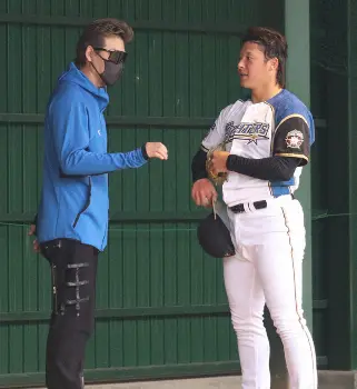 サンテレビ「熱血!タイガース党」に生出演した矢野監督(右は福本豊氏)(阪神球団提供)