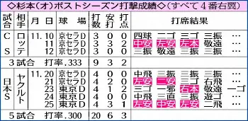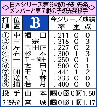 息詰まる熱戦から一夜明け、杉本の心は冷静だった。25日の第5戦は「今までで一番すごい試合でした」と9回にジョーンズの決勝弾が飛び出し、接戦を制した。ただ、2勝3敗と依然として王手をかけられた状況に変わりはない。負ければ終わりの崖っぷちから25年ぶりの日本一に輝くため、残り2試合、必勝を期した。