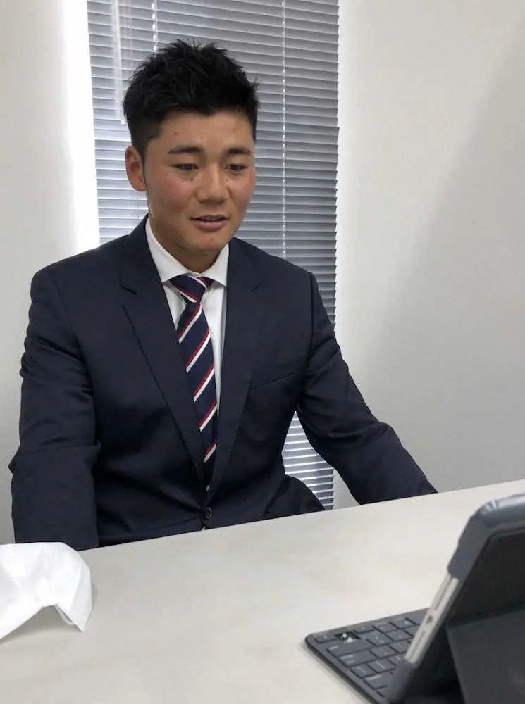 契約更改交渉を終え、オンライン取材に応じる日本ハム・清宮