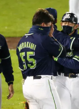 延長12回2死一塁、マクガフが宗を二ゴロに仕留めると、三塁側ベンチからヤクルトナインが飛び出し、喜びを爆発させた。マウンドに駆け寄る青木は涙を流していた。