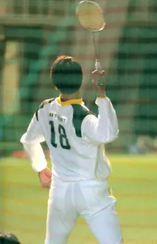 意識するのは体の軸とリリースポイントだ。バドミントンラケットを振る練習を取り入れ、「振ったら道具が勝手に修正してくれる」とニヤリ。軸を確認しながら、打点の高いフォームを体に染みこませる。