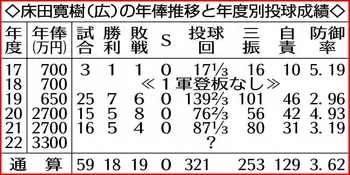 広島の床田寛樹投手(26)が1日、広島市南区の球団事務所で交渉に臨み、600万円増の推定年俸3300万円で契約を更改した。9月の月間MVPに輝くなど、今季は後半戦に巻き返して5勝をマーク。来季は左の柱としてシーズン通しての活躍を誓い、自身初の2桁10勝と投球回数150イニング超を目標に掲げた。