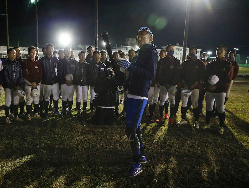 二塁手の作田凌太朗主将(17)は「野球界なら誰でも一回は憧れるというか、見たことがあるというか、そういう方だったので本当に来たときはびっくりした」と率直な思いを口にし、「自分たちにない考え方を知ることができて本当に良かった。ためになった」と目を輝かせた。印象に残ったこととして、「一塁のスチールで第2リードの取り方だったり、一塁から三塁に行く回り方」を挙げ「自分たちが今までやってきたこととは大きく違う。ちゃんとそのやり方に理由と根拠があってすごいなと思った。実戦でも生かしていきたい」と話した。