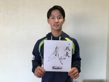 <中日ファン感謝デー>グッズショップの柱にサインする立浪監督