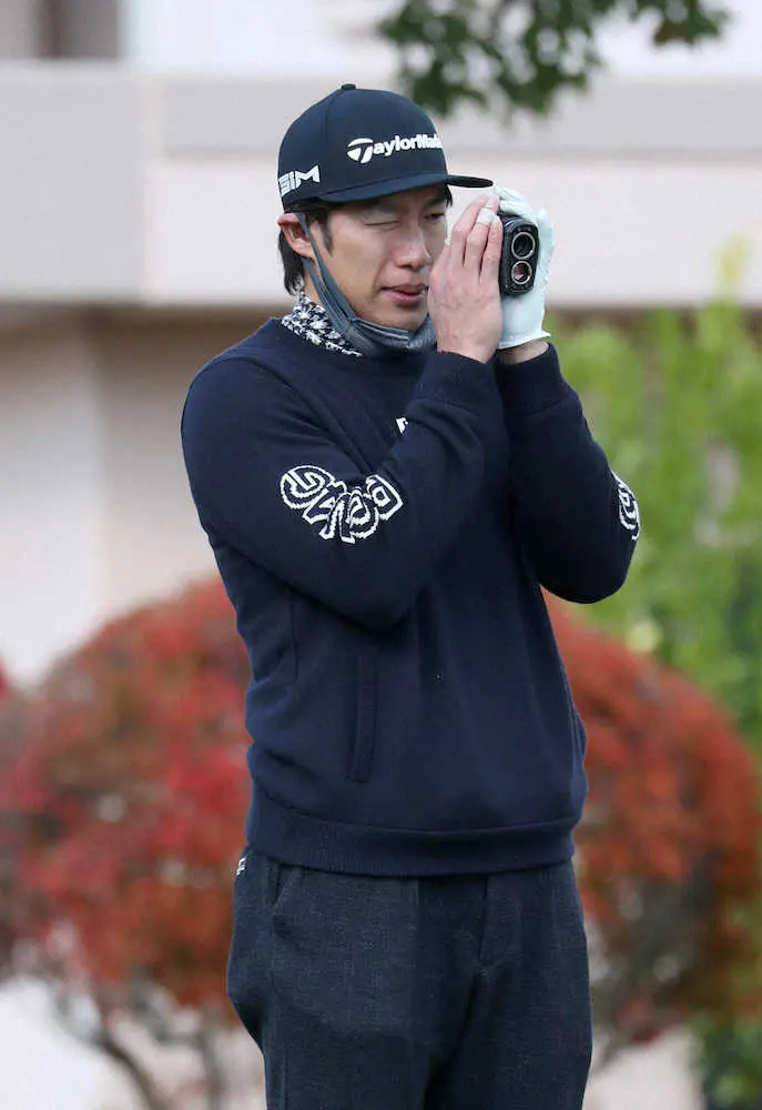 <ソフトバンク、球団納会ゴルフ>距離を確認する柳田(撮影・中村 達也)
