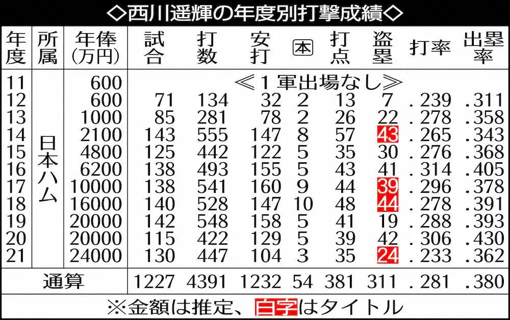 日本ハムの西川遥輝 Photo by スポニチ 巨人 日本ハム自由契約の西川を獲得調査、補強ポイント「1番」ハマる盗塁… ギャラリーで見る この記事のフォト 2021年12月05日の画像一覧 もっと見る 2021年12月05日の画像をもっと見る