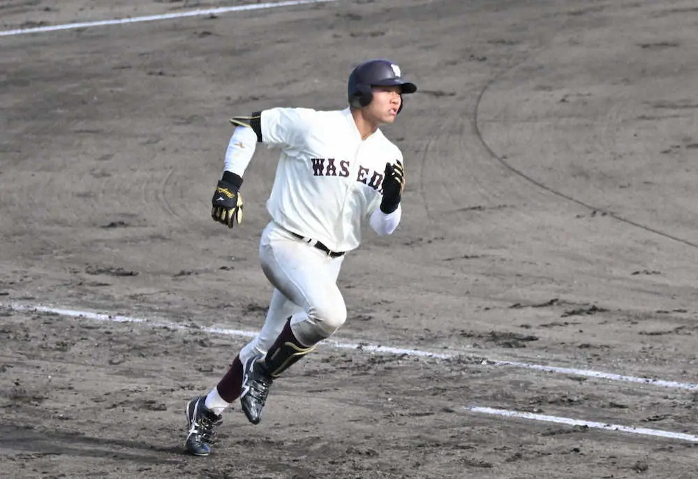 紅白戦で3安打を放ちアピールした早大・蛭間(撮影・柳内 遼平)