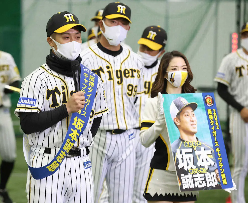 <阪神ファン感謝デー>新キャプテンに就任した坂本(撮影・大森 寛明)