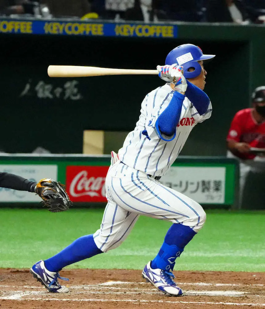 4回先頭。左打席に立った3番・稲垣が直球を左中間にライナーで運んだ。「ちょっとこすった感じだったんですけど、入ってくれて良かった」と喜んだ。