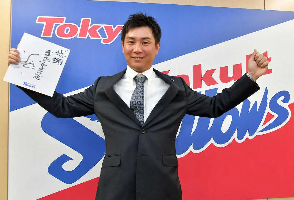 今季は代打の切り札として代打打率・366と勝負強さを発揮。球団OBの真中満が持つプロ野球記録にあと1と迫る代打でのシーズン30安打を放った。日本シリーズ第6戦では延長12回に代打で決勝打を放ち日本一に貢献。3000万円の大幅アップを勝ち取り、「めちゃくちゃ満足。本当に評価していただいた」と笑顔を見せた。