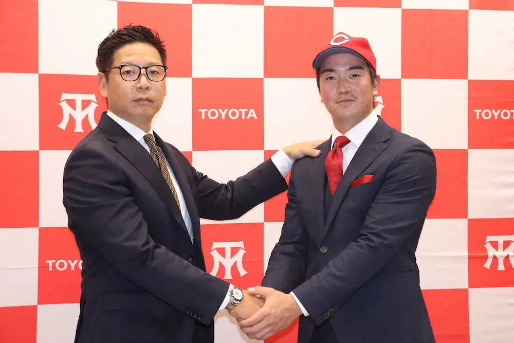 広島からドラフト3位指名されたトヨタ自動車・中村健人外野手(24)が6日、名古屋市内のホテルで交渉に臨み、契約金5000万円、年俸1100万円で仮契約を結んだ。