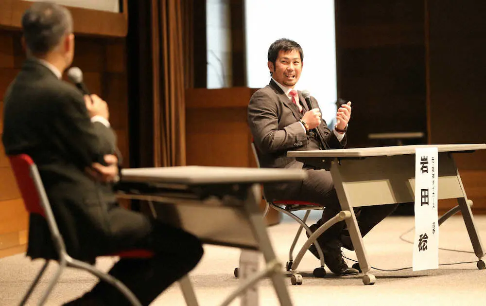 「逆境を乗り越える力」というテーマで、母校の学生を前にした岩田氏は「阪神タイガースは一言で言うと熱い特殊な球団だった。あかんかったら、ヤジられるけど、勝てば称賛される。それはめちゃくちゃ気持ち良かった。最後も盛大に送り出していただいて、感謝している」と虎一筋の野球人生を振り返った。