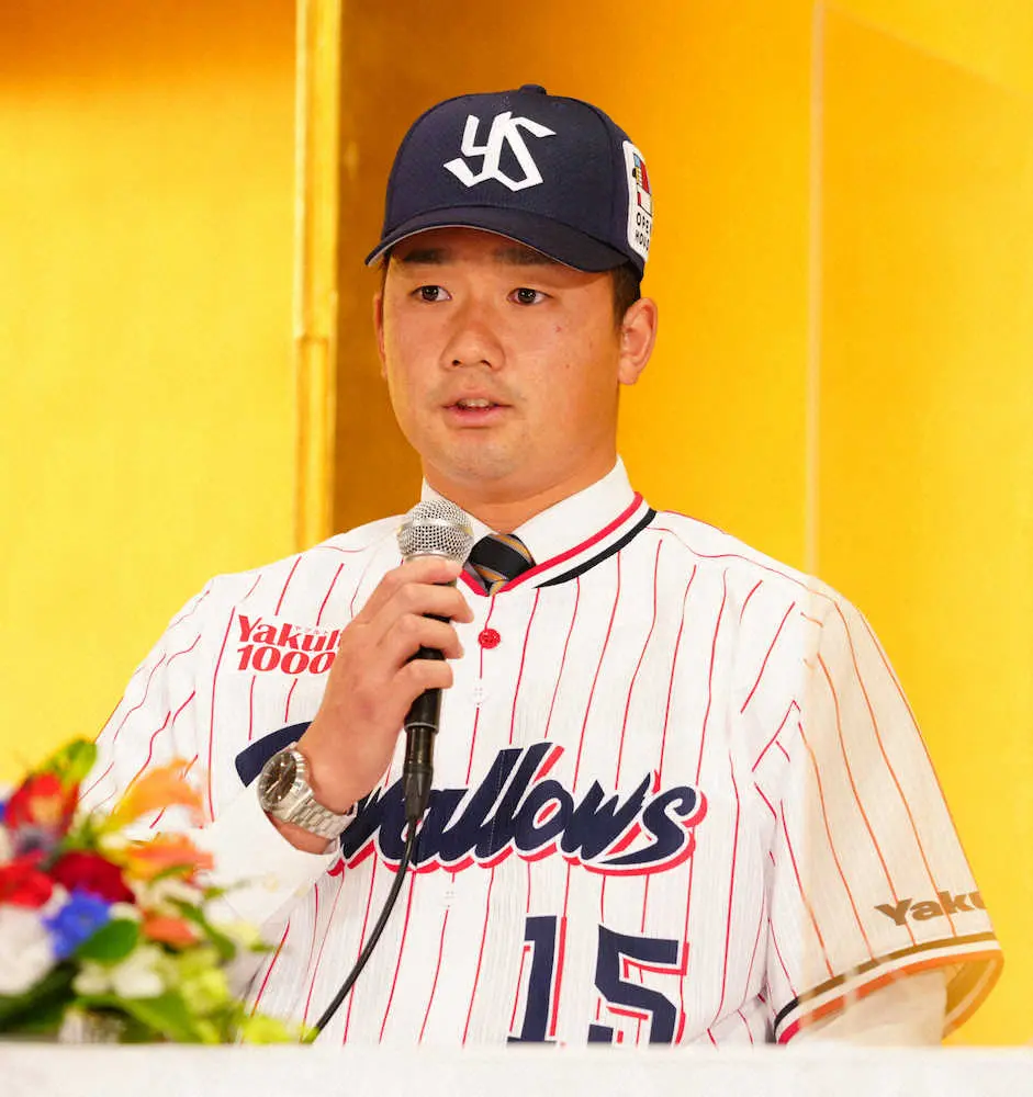 初対面した高津監督は「第一印象は、でかいなと。ローテーションに入って勝てる投手になってほしい」と期待。ドラフト指名後に疲労骨折した左手尺骨は15メートルのキャッチボールができるまで回復しているが、指揮官は来春のキャンプについて「今の時点では何ともいえないけれど、慌ててやらせるつもりはない」と方針を示した。