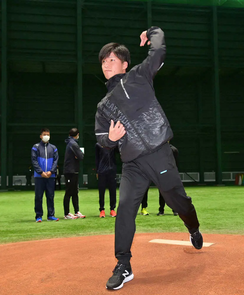 ドラフト1位の黒原拓未投手(22=関学大)は、「(観客席が)赤く染まるのが印象深いので、そういう景色を見られることを目標にして頑張っていきたいです。室内練習場がすごくきれいで、練習をするには十分な環境だと思った。しっかり技術を磨いていければなと思います」と目を輝かせ、同2位・森翔平投手(23=三菱重工West)は「球場で応援していただき、活躍するために頑張りたい」と意気込んだ。