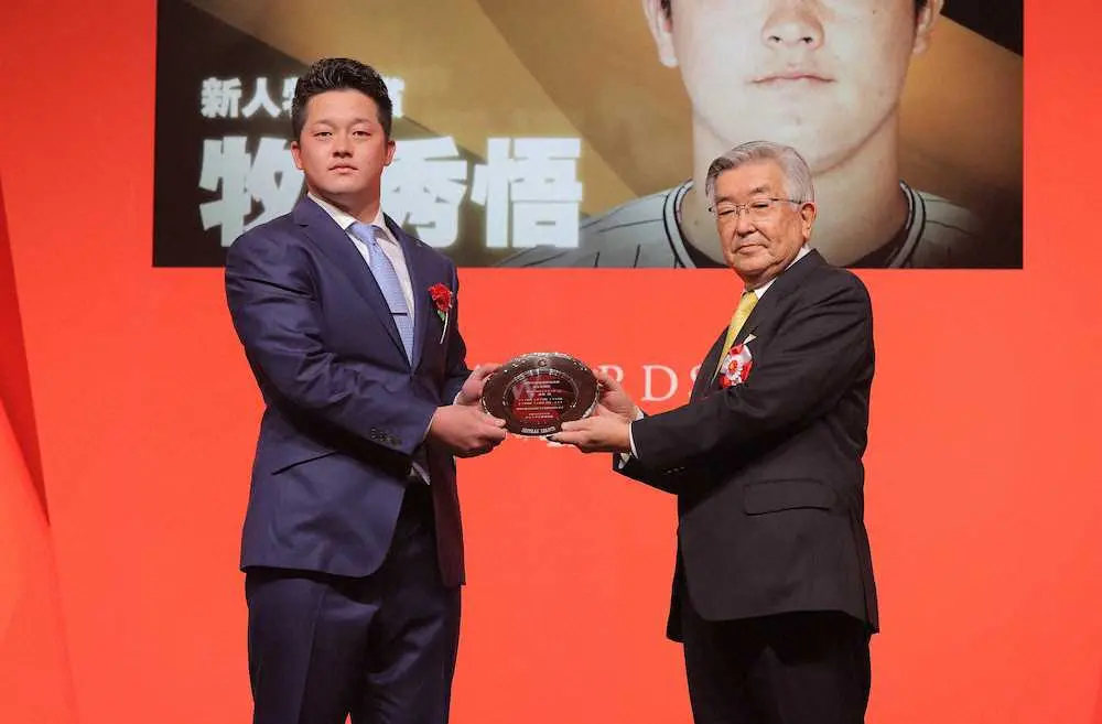 「NPB AWARDS 2021 supported byリポビタンD」が15日に開催され、DeNAの牧秀悟内野手が「新人特別賞」を受賞した。