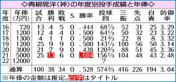 夢の大台到達も、サクセスロードをばく進中の男からすれば通過点に過ぎない。入団時の720万円から16・7倍増で1億円プレーヤーとなった青柳は「最大限の評価してもらえたので、満足」と頬を緩めながらも、さらなる高みを見据えた。