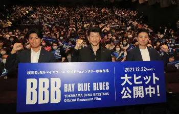 DeNAの三浦監督、佐野、今永が「BBB」公開初日で舞台あいさつ
