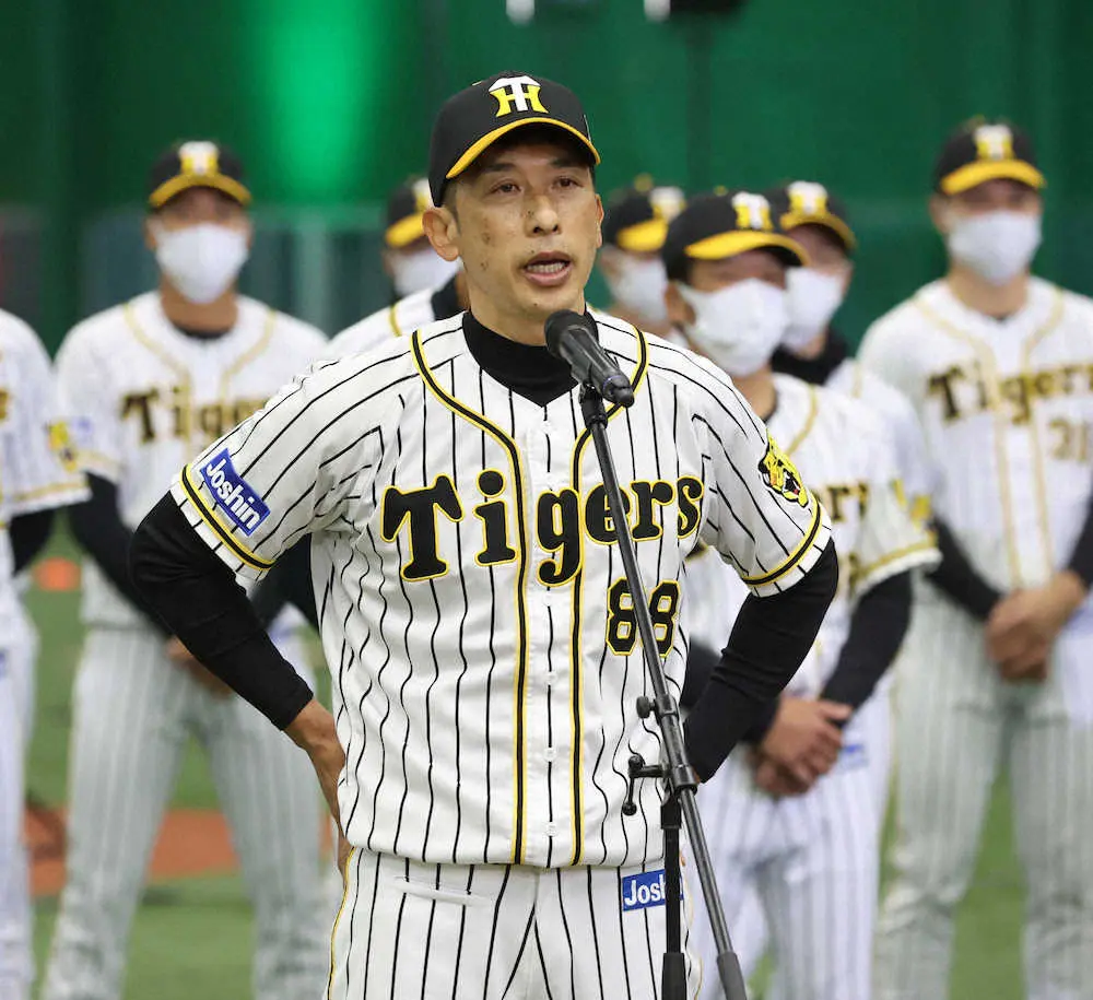 阪神・矢野監督は、人数制限こそあるものの有観客で実施見込みとなった来春の宜野座キャンプで佐藤輝の豪快な打撃をファンに見てもらいたいと訴えた。