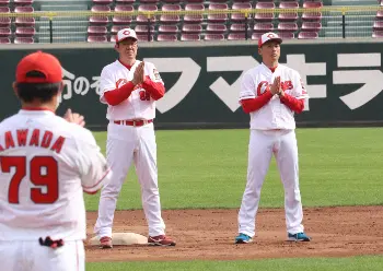 21年、金武町ベースボールスタジアムでキャッチボールする早川隆久