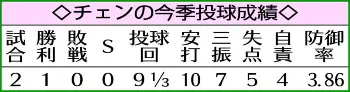阪神 チェンの今季投球成績 Photo by スポニチ 阪神・チェン 誓う完全復活!来季2年契約最終年 米国で左肩リハビリ順調 ギャラリーで見る この記事のフォト 2021年12月31日の画像一覧 もっと見る 2021年12月31日の画像をもっと見る