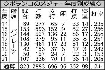 ポランコのメジャー年度別成績 Photo by スポニチ 巨人 メジャー96発98盗塁男獲得!元パイレーツのポランコと契約合意 近… ギャラリーで見る この記事のフォト 2022年01月05日の画像一覧 もっと見る 2022年01月05日の画像をもっと見る